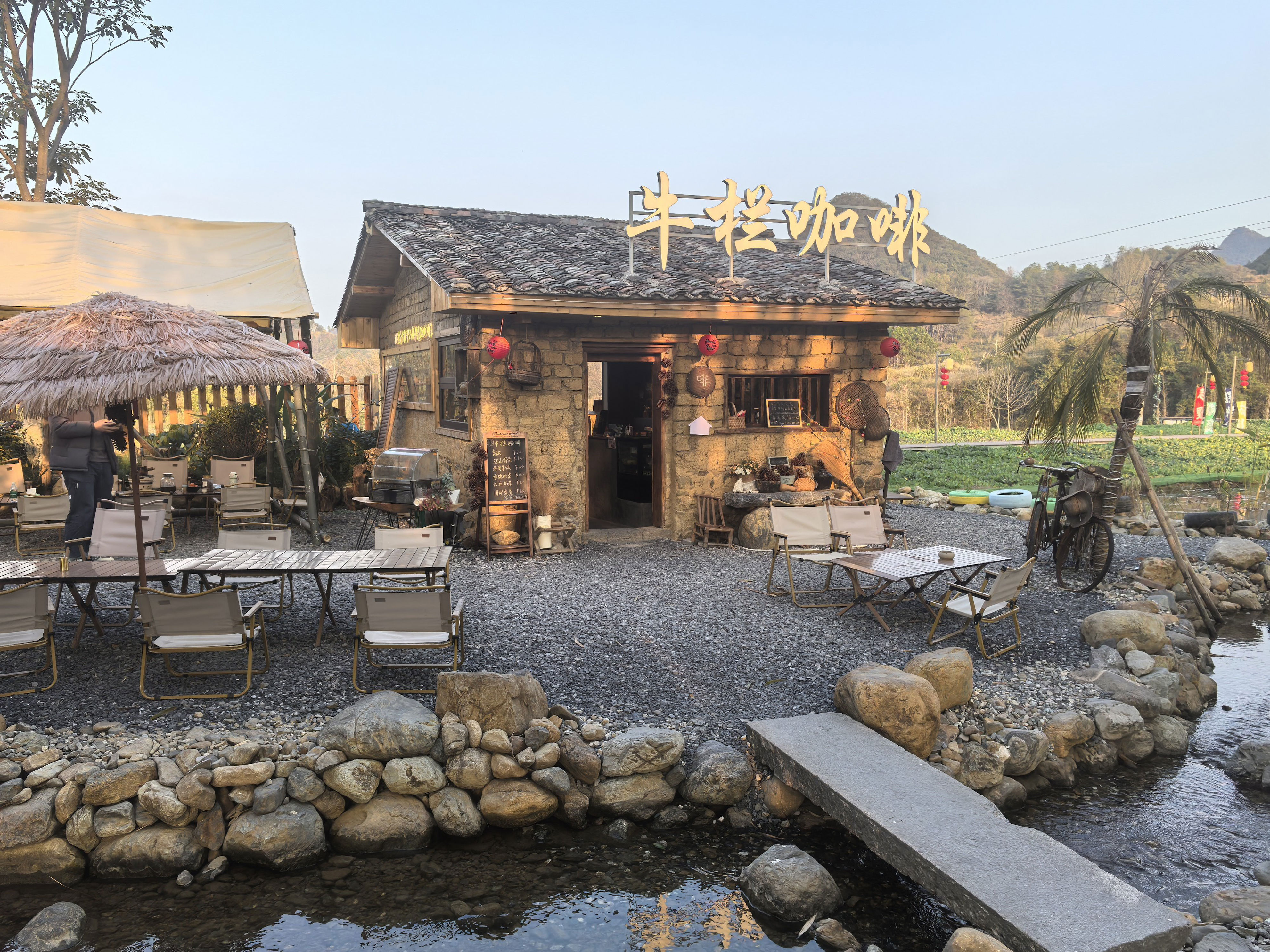 春节还没到,就有成群的游客驱车来到阳山县大崀镇松林村,他们要打卡的这个网红点有个别致的名字——牛栏咖啡。