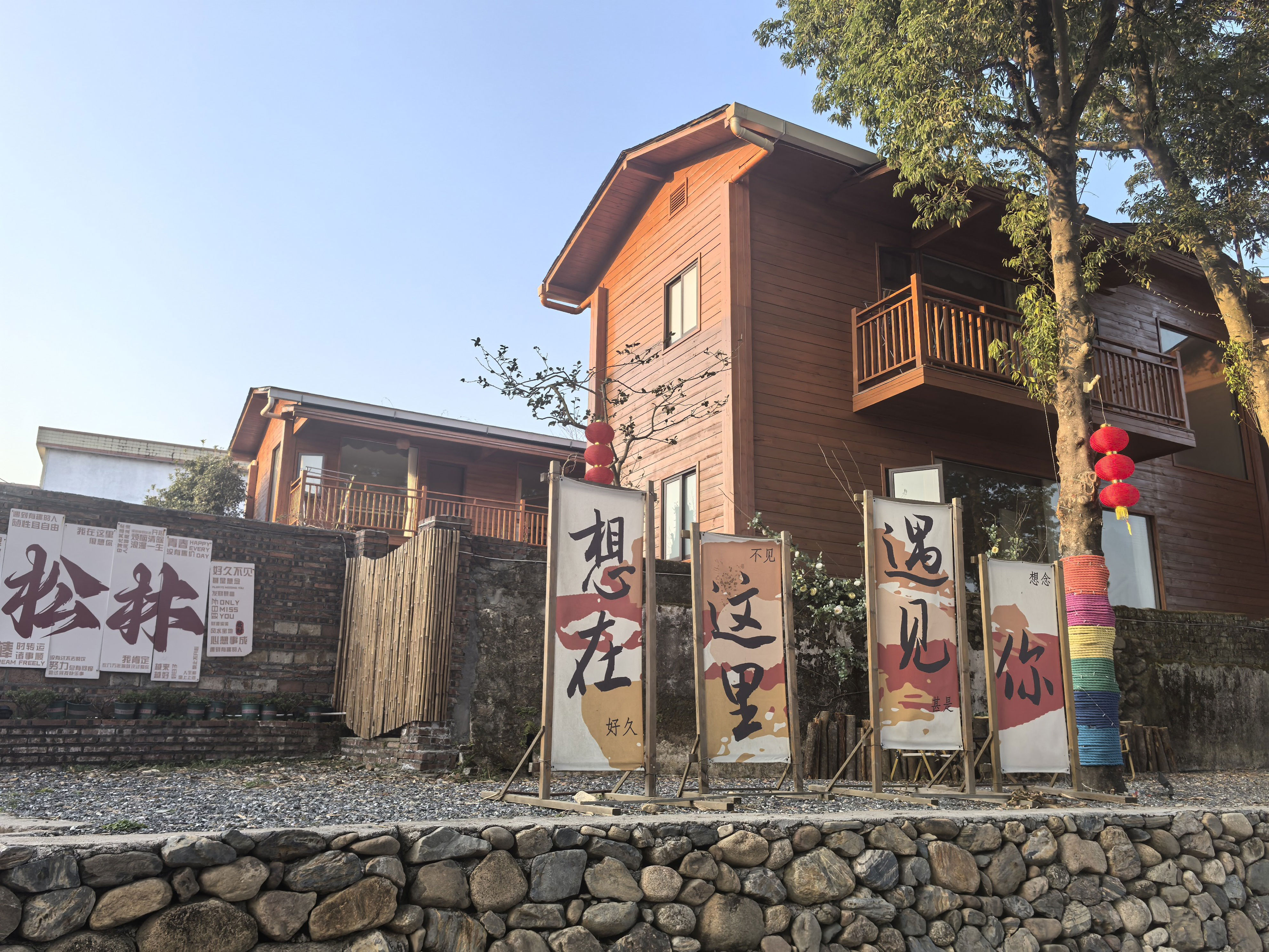 “英德果然居”团队还对村内2栋具有历史价值的闲置老房进行保护性改造,并依山新建6栋生态木屋别墅。改造秉承“修旧如旧”理念,保留传统夯土墙、青砖黛瓦的乡村肌理,巧妙融入现代舒适元素与高端旅居体验,使“老房子”蝶变为承载乡愁的精品民宿核心区——“松林小筑”。